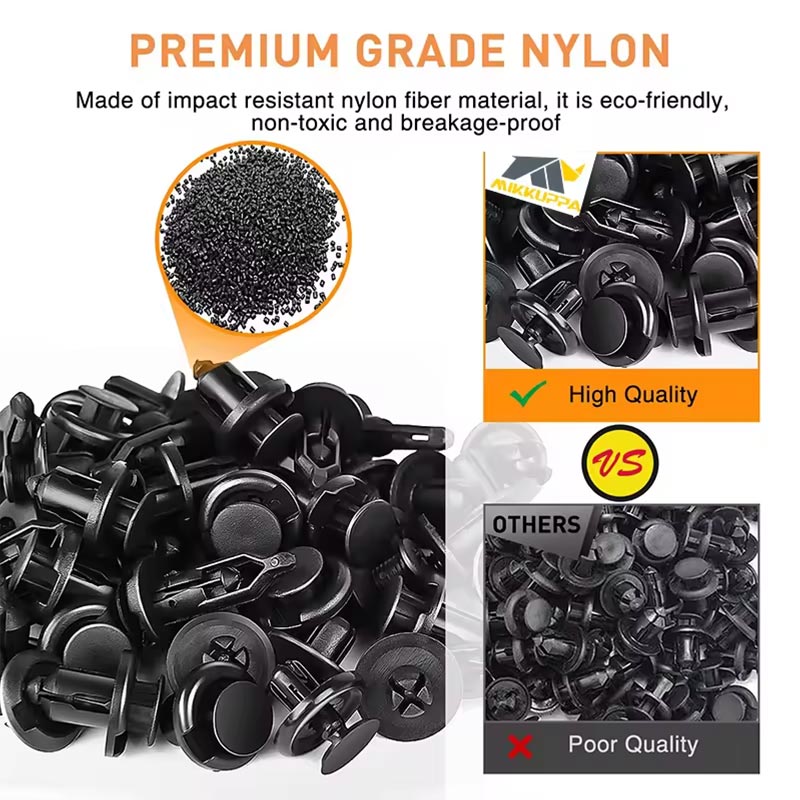 Materiales de alta calidad:Nuestros clips de retención de carrocería de automóvil están hechos de nailon duradero, lo que garantiza un rendimiento duradero y resistencia al desgaste. Versatilidad:Nuestro juego de clips de retención de carrocería es adecuado para una amplia gama de marcas y aplicaciones de vehículos, proporcionando una solución integral para diversas necesidades automotrices. Entrega rápida:Garantizamos la entrega oportuna dentro de los 15 días hábiles para satisfacer sus necesidades urgentes. Atención al cliente:Nuestro equipo dedicado ofrece soporte técnico profesional y servicio posventa para garantizar su satisfacción.