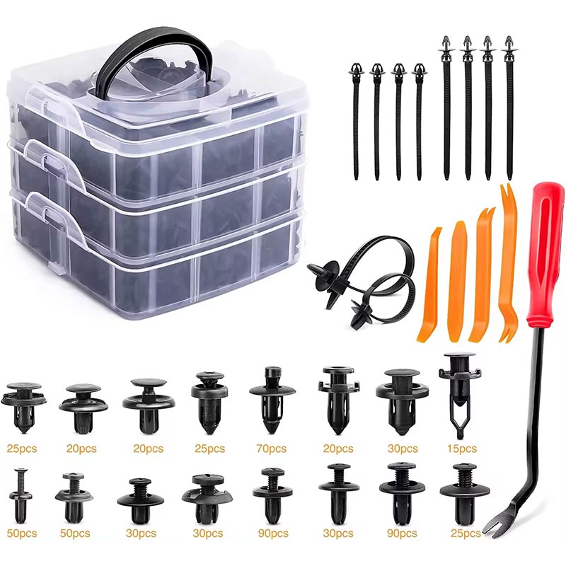 Aquí está la introducción de los juegos de clips de remaches de guardabarros de nailon para automóviles de la fábrica Qeepei, un kit multifunción al por mayor diseñado para satisfacer una amplia gama de necesidades de sujeción de automóviles. Este juego de sujetadores universales de plástico para automóviles de 635 piezas es perfecto para asegurar tapetes, paneles de puertas, parachoques y más. Diseñado para uso profesional, este kit versátil garantiza que tenga el clip adecuado para cualquier trabajo, lo que lo convierte en una herramienta esencial para talleres de modificación de automóviles, centros de reparación, importadores y fabricantes de automóviles.